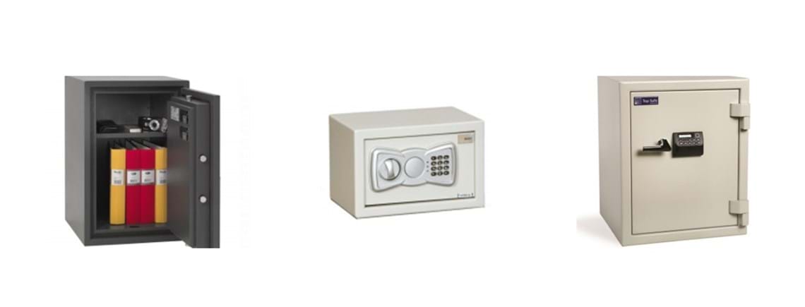 Vi erbjuder flera olika typer av värdeskåp, till exempel inbrottsfördröjande skåp, brandklassade värdeskåp, nyckelgömmor eller säkerhetsskåp för vapen, där du kan förvara dina viktiga saker.